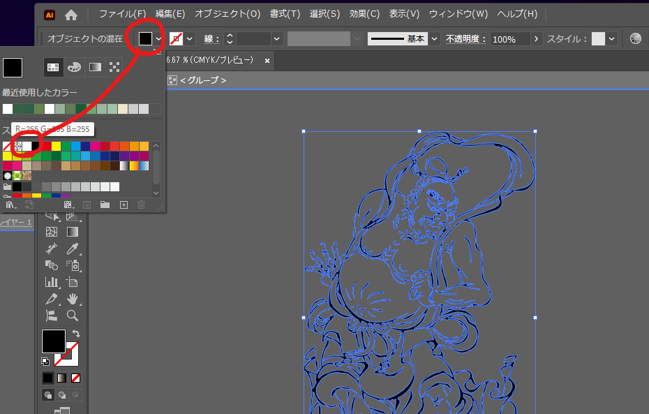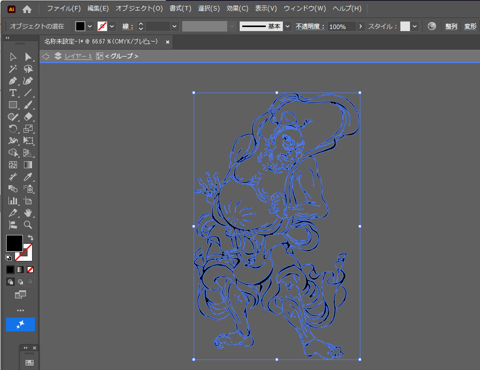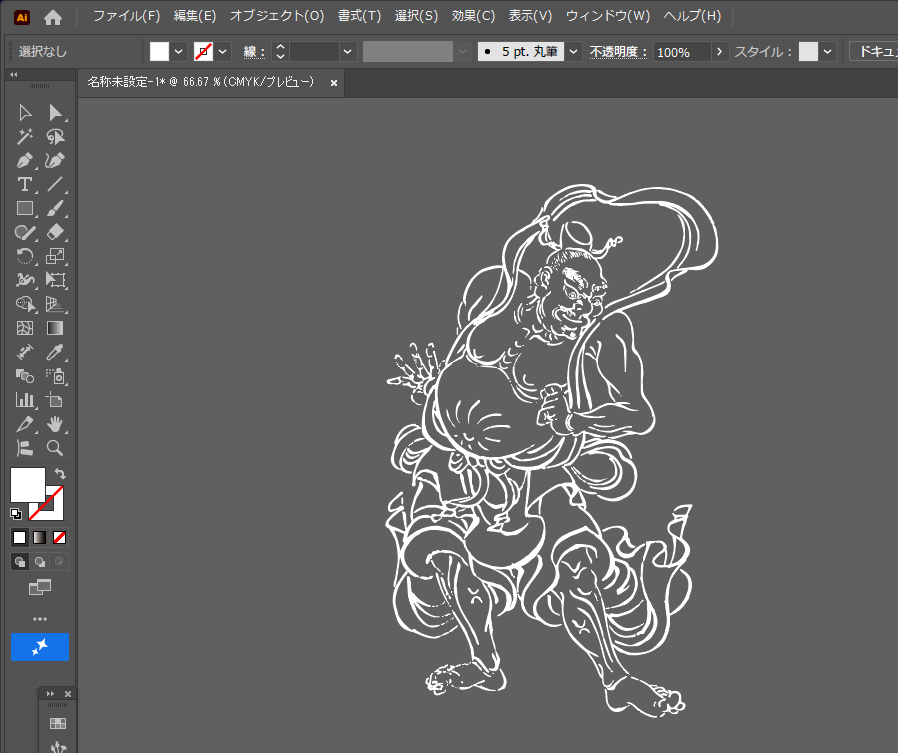 UkiyoeStockの有料版モノクロ素材は、Illustratorを使えばとても簡単に白線化できます。