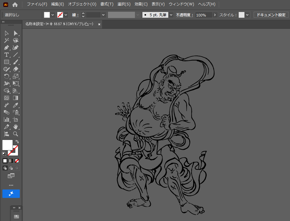 UkiyoeStockのモノクロ素材の有料版ベクターファイル(AI / EPS)をIllustratorで開きます。